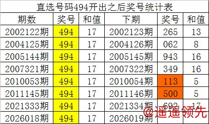 从以上统计可以看出,直选号码494出现之后,其下期奖号:1.下期小 号出现概率100%;2.下期0路号码出现概率100%;3.下期质数出现概率100%;
